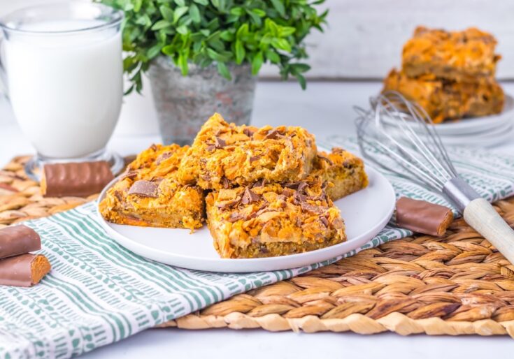 If you’re a fan of that crunchy, peanut buttery Butterfinger flavor, you’re going to need to make these Butterfinger cookie bars.