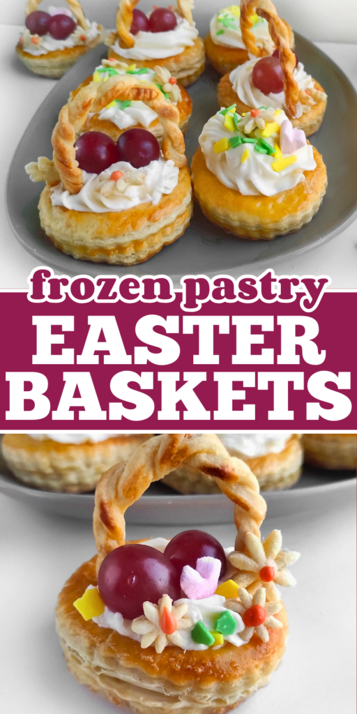 These Puff Pastry Easter Baskets are a fun, easy way to make an impressive spring dessert without a ton of effort. They’re such a cute Easter dessert that can be personalized with your family’s favorite fruits or Easter candy.
